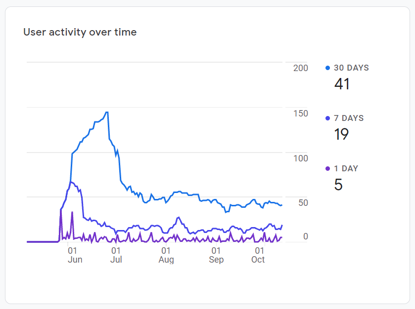 I'm somewhat ignoring the huge spike and decline at the start, because focusing on that would make me sad. Also, because it's likely a combination of a.) insufficient data and b.) a big spike in traffic due to starting at Atlassian.